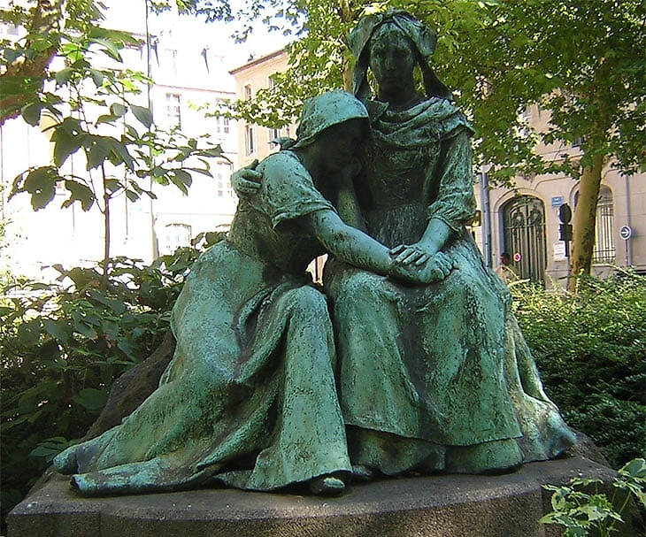 В Нанси, который немцы себе не забрали, был установлен аллегорический памятник, составленный из двух фигур: Лотарингия плакала на плече Эльзаса.