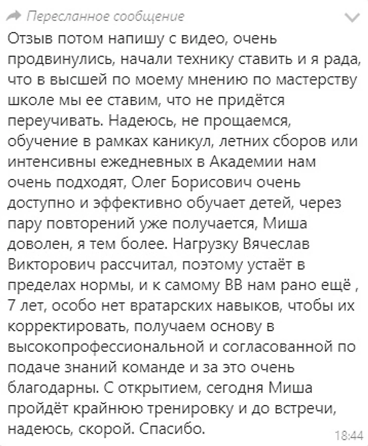- Вместе с нами Игорь презентовал проект губернатору Московской области и рассказывал о его достоинствах. Кроме того, мы всегда с ним на связи и обсуждаем, как можно улучшить работу академии. Когда позволят обстоятельства, он приедет в Реутов и даст мастер-класс, побеседует с детишками, поделится опытом.