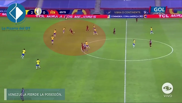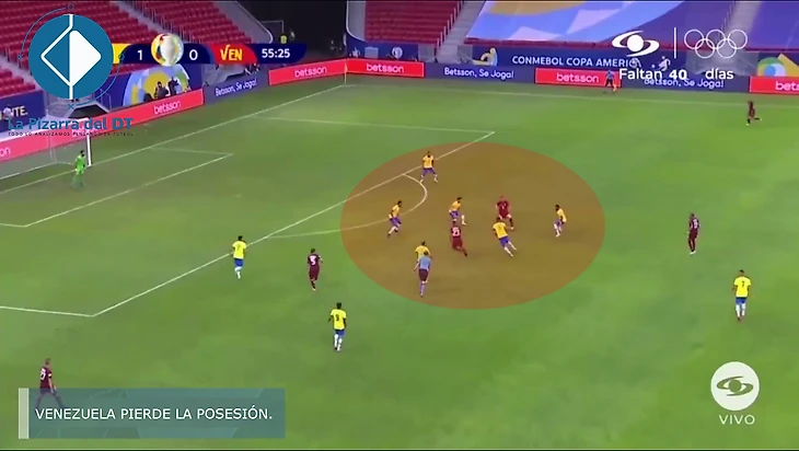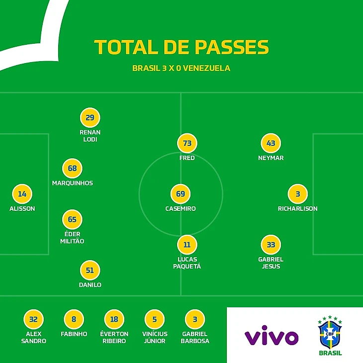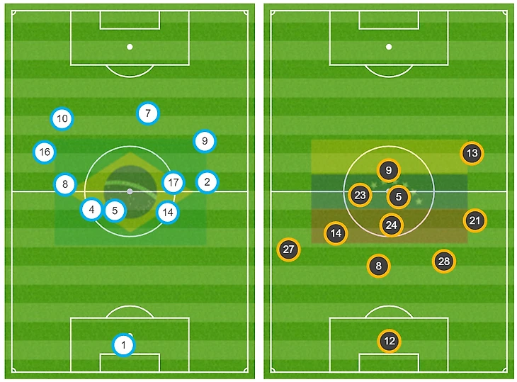 Обратите внимание,по итогам первого тайма аж 7 (семь!!) игроков в жёлтых футболках практически не покидали половину поля венесуэльцев. Только «краеугольный треугольник» Маркиньос-Милитао-Каземиро отвечал за безопасность ворот Алиссона.