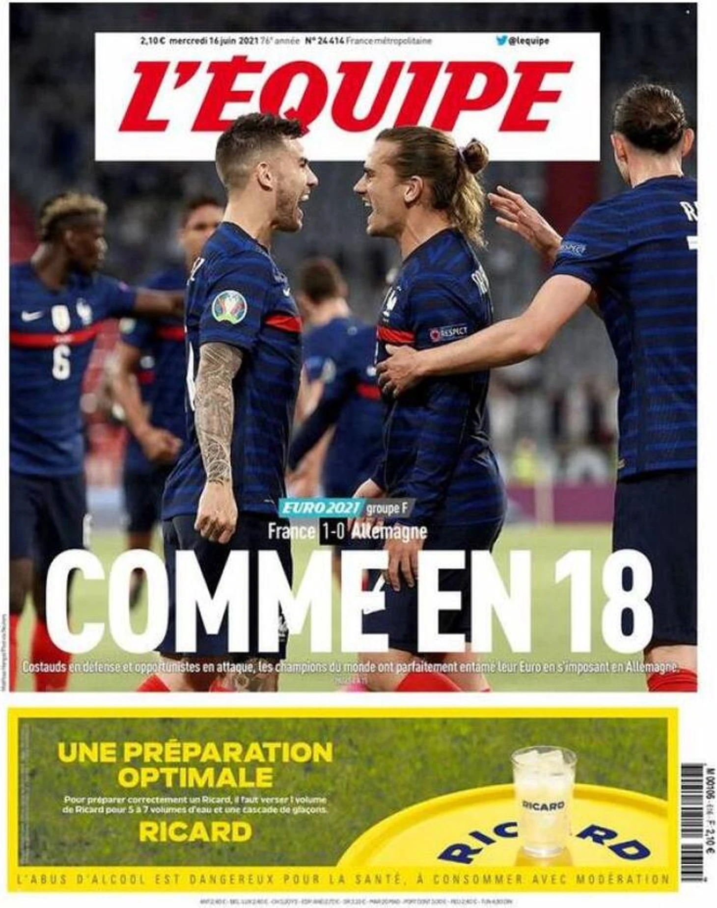 Французы торжествуют по случаю победы своей сборной над одним из главных соперников, пишут про допущенные ошибки судьи и восторгаются игрой Погба и Варана, игра которых стала основой для успешного выступления команды в дебютном матче. Но главная причина резонанса заключается именно в заголовке. Журналисты, конечно же, подразумевали так же победный для их сборной матч против немцев в Лиге Наций в 2018 году. Но, общественность увидела в этом заголовке отсылку к 1918 году, а именно к подписанию «Компьенского перемирия», в котором германия, по сути, признала свою капитуляцию и полное поражение в первой мировой войне. В общем, ситуация специфичная, но пользователи в соц. сетях обрушились с критикой на «L'Equip» считая, что они «перегнули», требуя изменить заголовок и принести свои извинения. Ох уж эти социальные сети... В остальном, матч получился не богатым на зрелища, прагматизм сборной Франции опять победил, ну а немцы, похоже, предстали в не самой лучшей своей форме. Спишем все на нервозность от первого матча, дальше должно быть веселее.