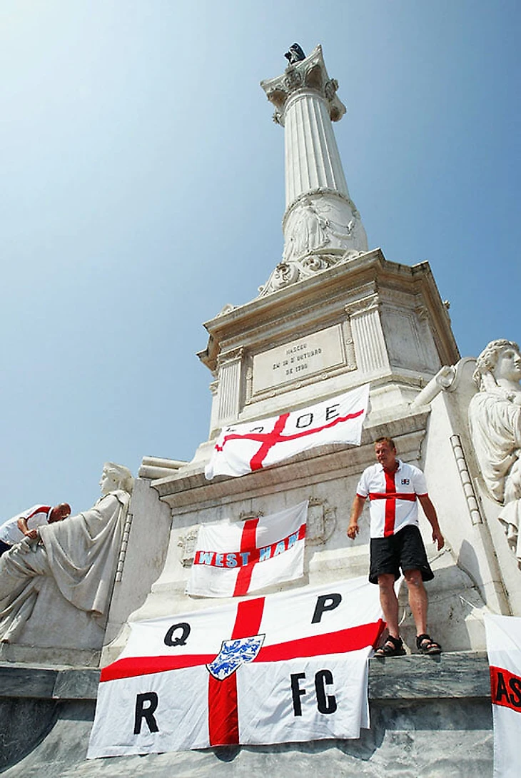 Англичане приехали на Евро-2004 как домой и ждали от своей сборной только победы. Перед игрой с Францией фанаты массово заехали в сердце Лиссабона – площадь Коммерции – и по-хозяйски устроились там. Вся площадь превратилась в музей английских флагов – по слухам, там собрали флаги вообще всех городов Англии.