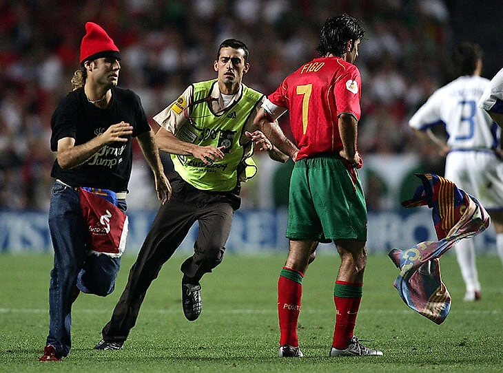 Болельщик выбежал на поле в финале Евро-2004 – и сделал вечер Луиша Фигу еще более запоминающимся