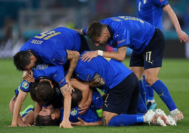 Если сборная Манчини опровергнет этот тезис, да ещё и сможет обыграть прагматичных французов то просто нет слов. Роберто в пору будет причислять к лику святых. Но это я уже слишком далеко хватил. На данную минуту итальянцы обеспечили себе только выход в 1/8 финала, где вероятнее всего сыграют с Украиной или Австрией.