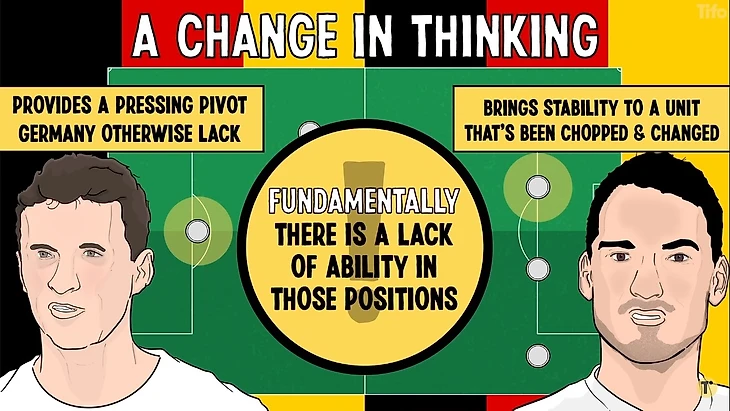 Очевидно, что есть проблемы в центре поля и на позициях крайних защитников. Кристиан Гюнтер из "Фрайбурга" был вызван в команду через семь лет после своей единственной предыдущей игры за сборную, а накануне турнира Йозуа Киммих вернулся к своей первоначальной роли правого крайнего защитника, поскольку Лёв, похоже, довольствовался тройкой защитников.