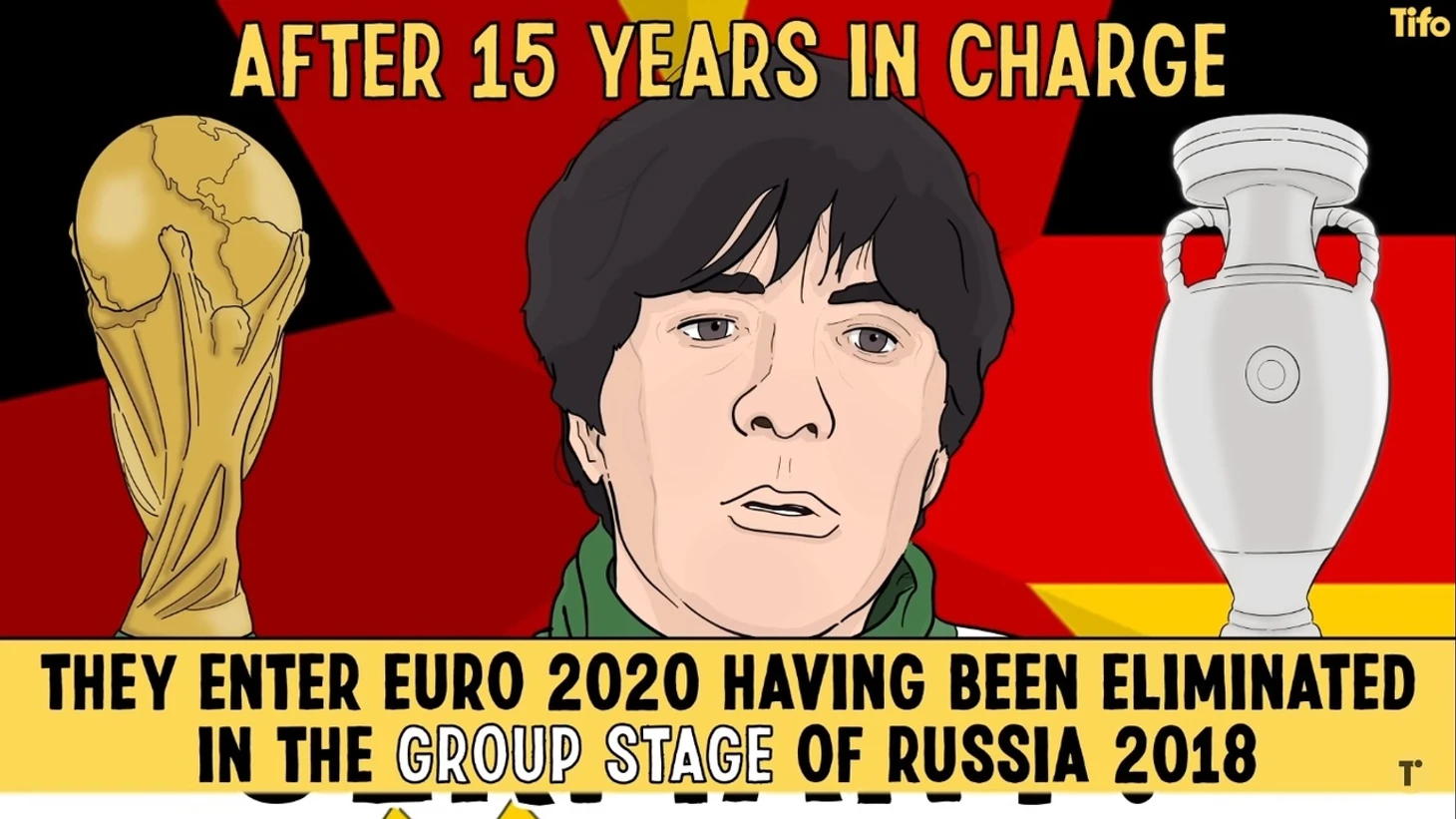 После пятнадцати лет тренерского правления, Йоахим Лёв вскоре оставит этот пост. Йоахим Лёв был, в значительной степени, успешным, но прошло семь лет, с тех пор, как Германия выиграла Чемпионат мира, и, хотя они и вышли в полуфинал последнего чемпионата Европы, они также вылетели на групповом этапе в России 2018 и после трех лет неудовлетворительных результатов играют в нынешнем чемпионате Европы! В чем же проблема?