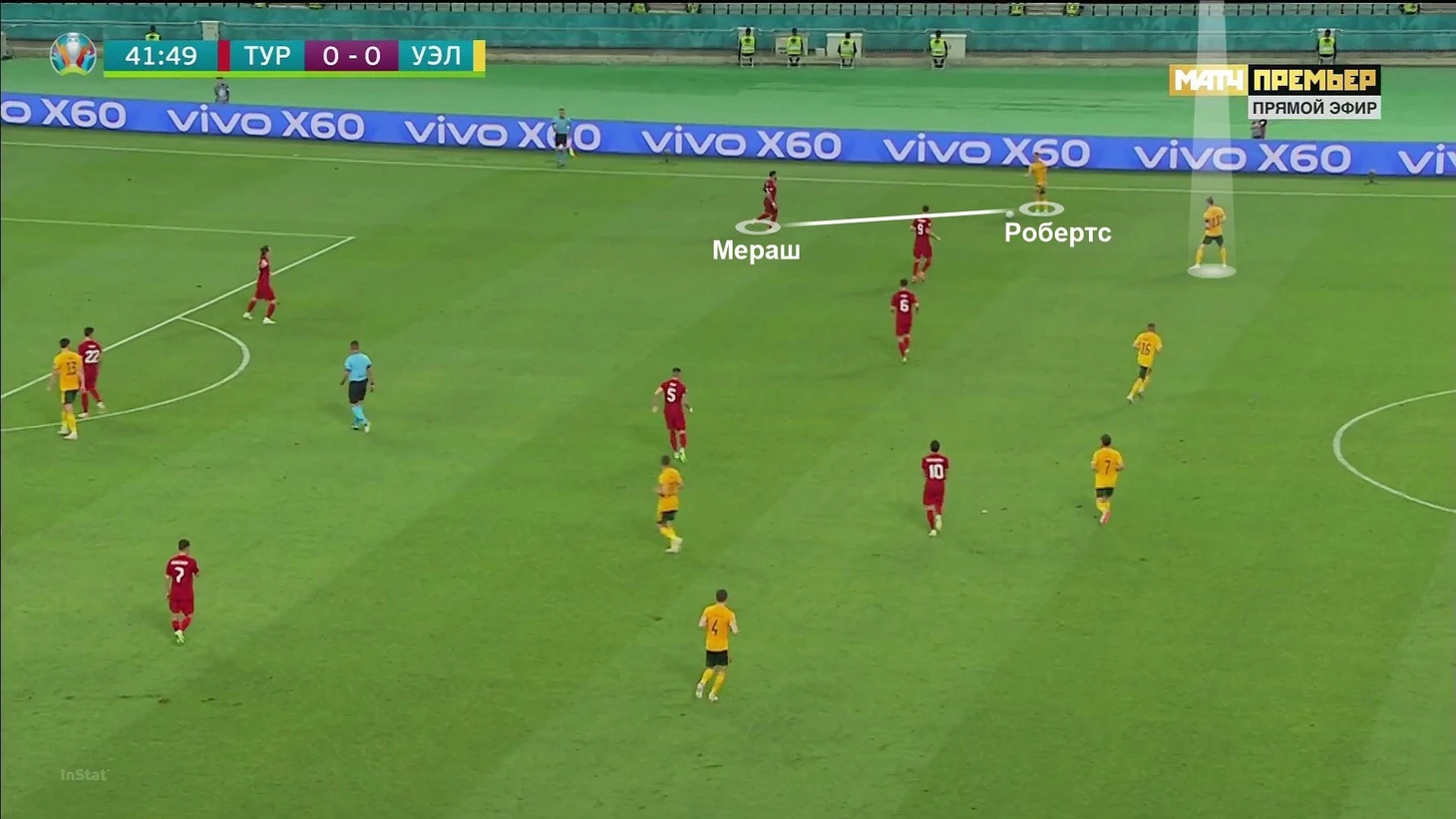 Самым простым способом нейтрализовать описанное движение Гарета были плотные походы за ним Мешара до упора. Но резкие рывки Робертса лишали Турцию такой опции.