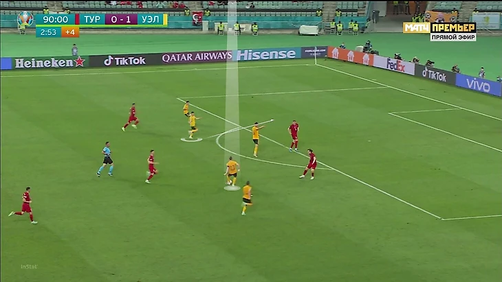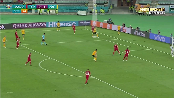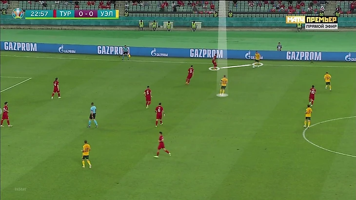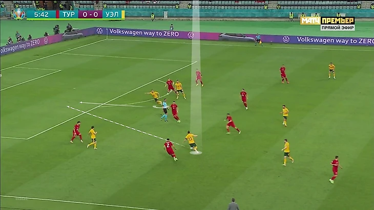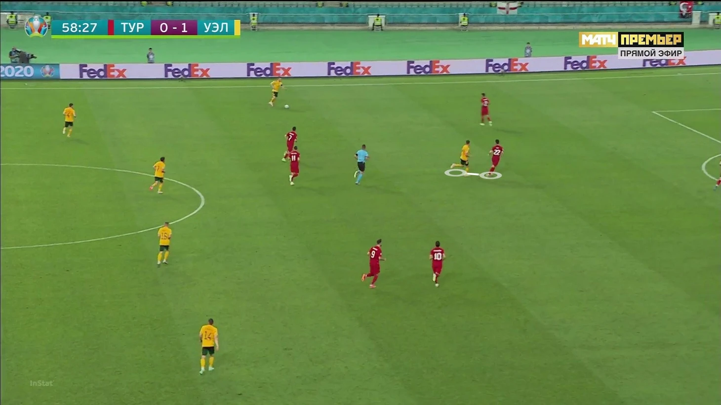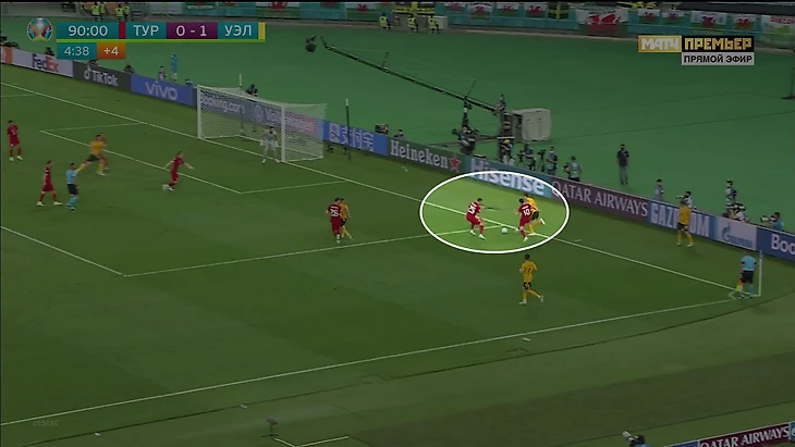 Вторая важнейшая деталь – рывки Рэмзи и особенности турецкой обороны. Тут надо отметить решение Роба Пейджа – в первом матче Уэльс играл 4-3-3, а сейчас 4-2-3-1 с более высокой позицией Рэмзи, что делало рывки еще более частыми и убойными. Вероятно, Турция ожидала Рэмзи в другой роли – в качестве центрального полузащитника.