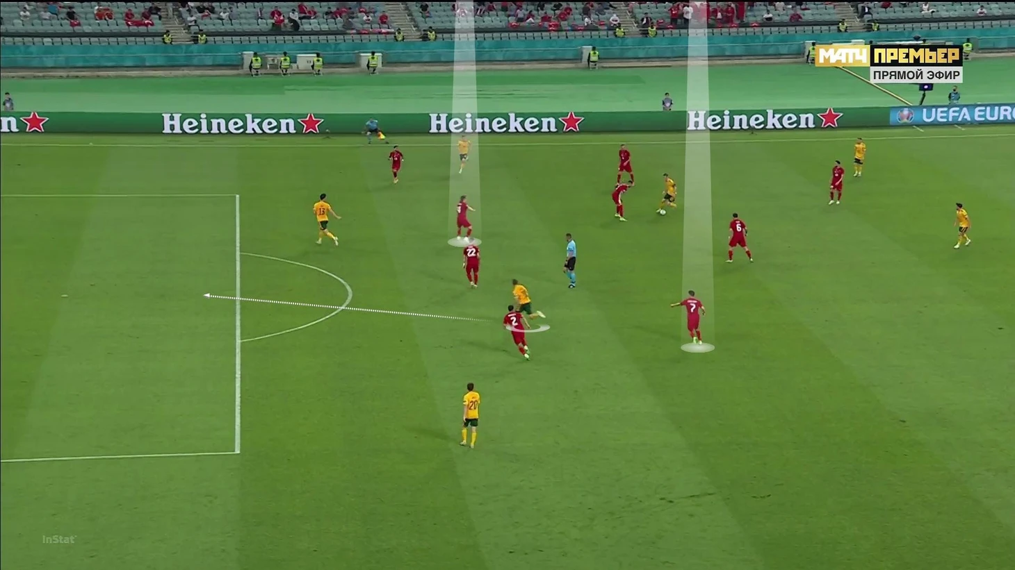 • Турецкие центральные защитники и опорник Окай Йокушлу, которые в первом тайме пытались передавать Рэмзи. Провальность плана действиями в перерыве признал Шенол Гюнеш.