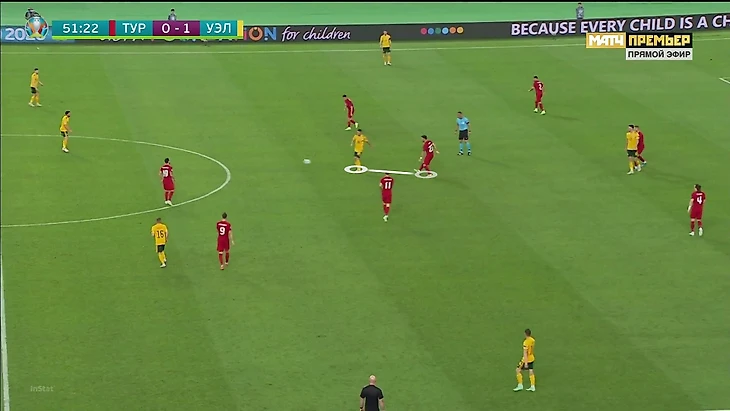 Пытаясь адаптироваться, турки в первой половине передавали Аарона персонально от опорника Окая к центральным защитникам. Такой план – подарок для футболиста с уровнем движения Рэмзи. Он идеально наказывает даже мелкие ошибки при передаче, а у Турции были не мелкие, а настоящие фэйлы.