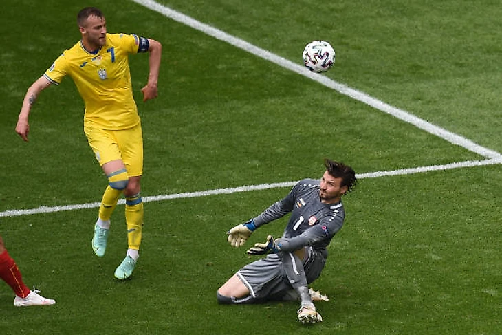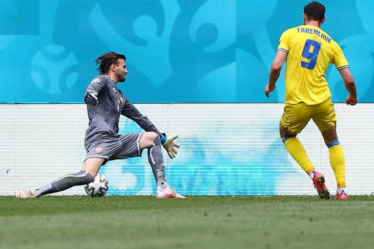 Пенальти в ворота Украины был, Караваев попал по ноге Пандева. Защитникам нужно быстрее реагировать на отбитый Бущаном мяч. Хотя опять же в идеале отбивать в сторону.