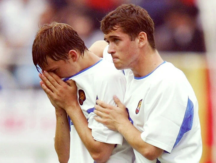 Но все мы знаем, что было дальше. Россия быстро пропустила, отыгралась в начале второго тайма и вполне могла выйти вперед – моменты были. Но за 10 минут до конца бельгийцы выстрелили двумя голами, а россиян хватило лишь на молодежный гол имени Кержакова и Сычева. Слезы Дмитрия – самые яркие эмоции того турнира.