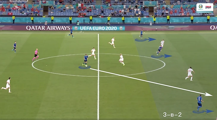 Если в первом матче сборная Италии показала нам свою состоятельность в позиционном нападении, то в этом подопечные Манчини дали понять, что представляют большую опасность и в быстрых атаках, если предоставить им пространство.