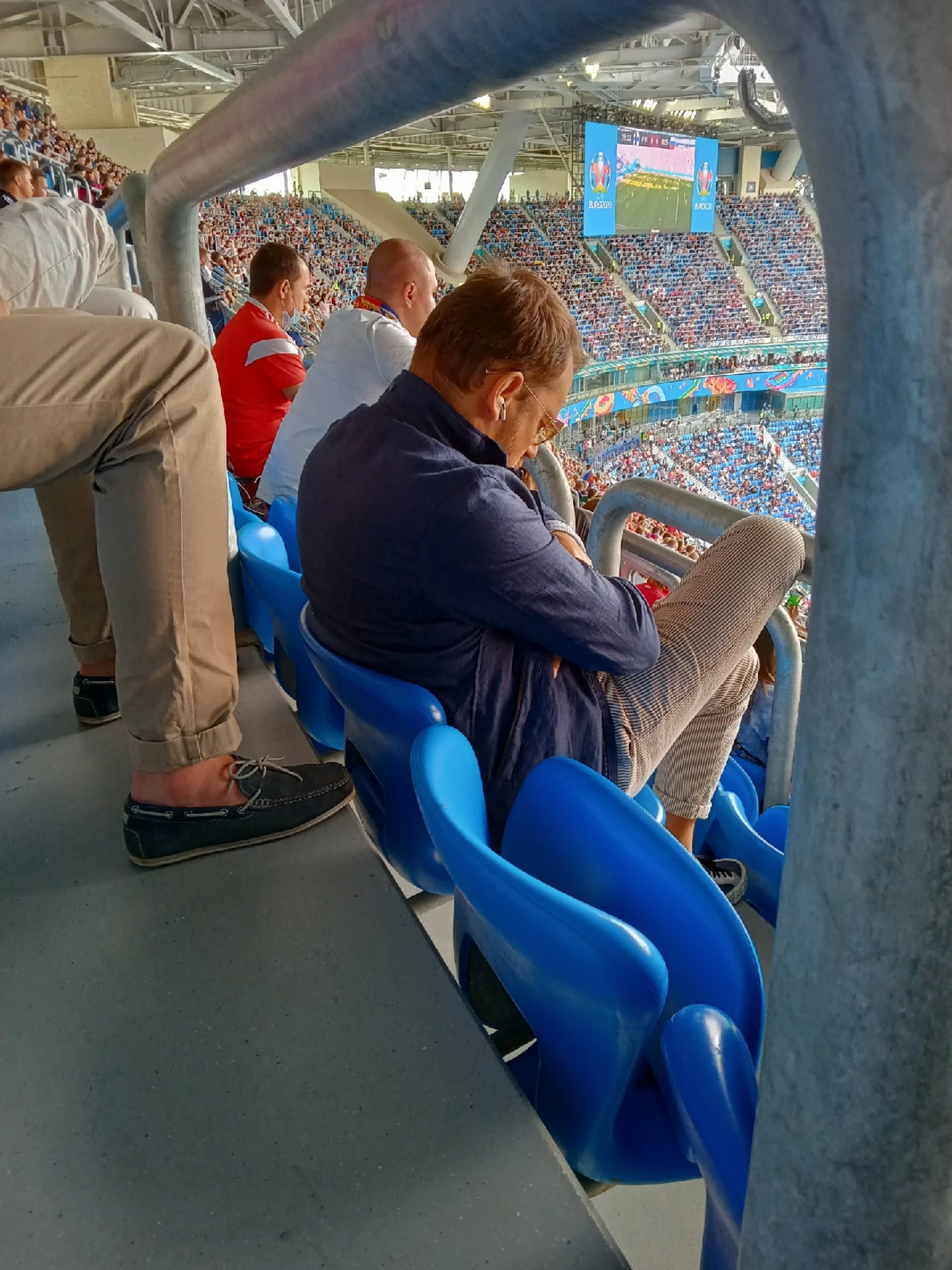 Второй тайм выдался более компромиссным, финны слегка забрали себе мяч, но лучше на поле выглядела все же команда Черчесова. Дивеев продолжал расчищать, а Сафонов просто стабильно не ошибался, справляясь с не самыми сложными ударами. Появление Жемалетдинова помогло тем, что не позволяло финнам забывать об их обороне. Стабильные качественные скидки Артема в свободные аэродромы для реактивного Жемалетдинова чуть не принесли нам второй гол, но все равно сыграли важную психологическую роль. Вы уже наверное заметили, как Черчесов любит обратные замены. Похоже, наши игроки к этому настолько привыкли, что когда помощник арбитра поднимал табло для замены игроков, Караваев увидел четвертый номер и слегка психанул, жестами показывая: "Что?! Меня собрались заменить?".Спустя пару секунд все образумилось (это финны меняли своего четвертого номера), но в целом эпизод редкий и забавный. Если вы оказались на большом матче на Газпром-Арене, то спешить покидать стадион за пять минут до кона точно не стоит. Мы вышли вместе со всеми, когда матч уже закончился, давки и толкотни не было даже близко. Выходы расположены таким образом, чтобы обеспечить посетителям бОльшую свободу. Ни один турнир и близко не стоит по преображению городов на том уровне, как это делает Чемпионат Мира, но все же видно что Питер живет футболом.