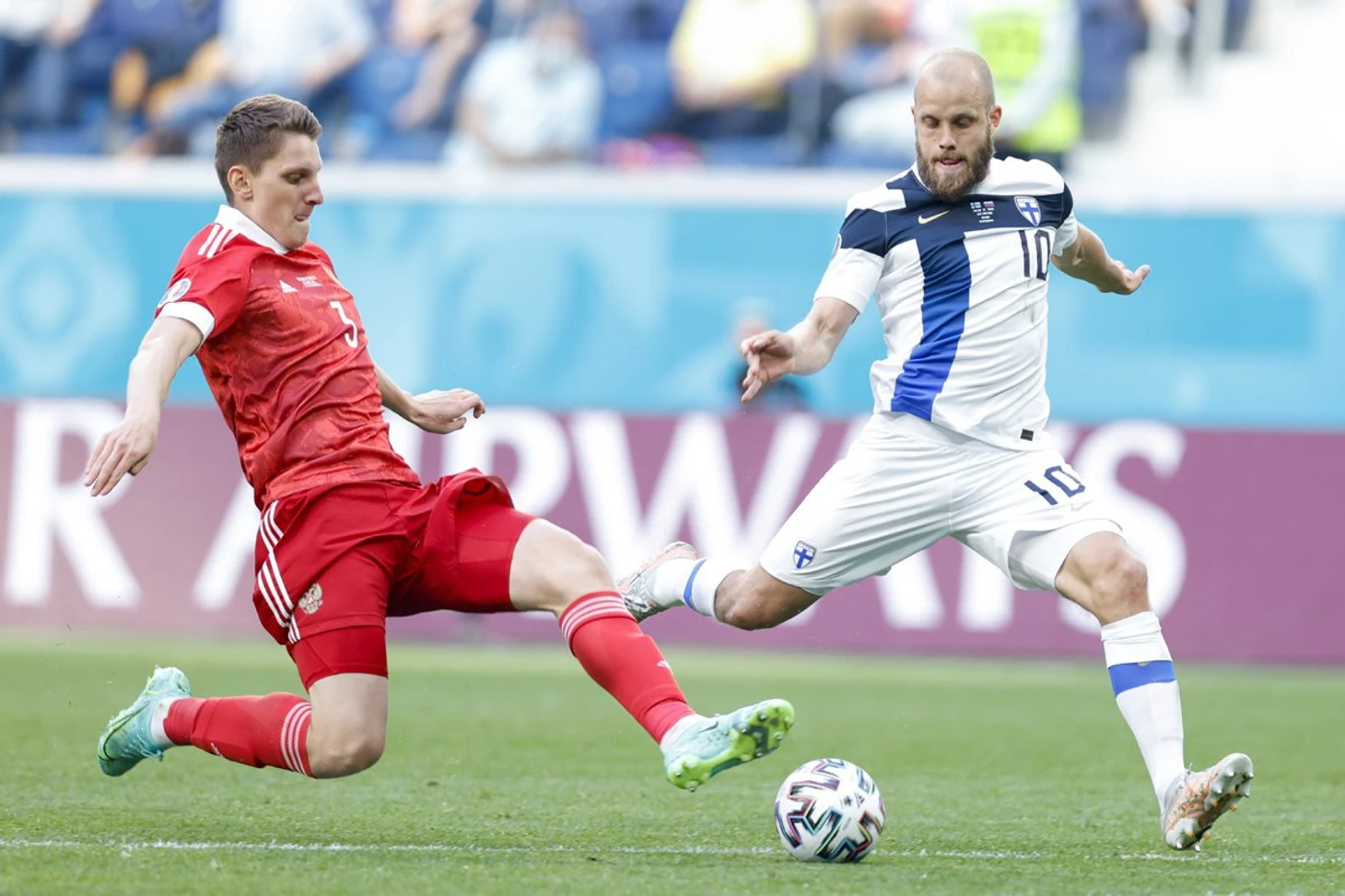Штаб Черчесова принял решение начать с ромбом в центре (с такое же формацией играли концовку с бельгийцами), где контролирующим опорником, опускающимся глубже, был Рома Зобнин. Первый тайм прошел с явным преимуществом сборной России. Да, финны сумели забить гол. Не хочется никого винить и задним умом додумывать, что было бы дальше, если бы рефери не разглядел офсайд, но все же это ошибка Кузяева. Далер всю игру старался действовать максимально надежно на мяче, но в момент передачи Дивеева, он почему-то замешкался и проиграл борьбу. Выглядело так, что он просто не определился между двумя решениями. Когда Похьянпало отправил мяч в ворота, это были самые страшные и тихие минуты матча. "Ну неужели опять? Ну сколько можно?" - думал я об игре сборной. Но решение об отмене гола завело наших игроков (больше всех радовался Головин), мы начали активно прессинговать. Попытки прессинга оказывались крайне удачными, финны терялись под давлением и ошибались в простых передачах, но организовать быструю контратаку мы не могли, как бы ни старались Головин и Миранчук. Все сводилось к контролю, растягиванию соперника, и попыткам аккуратных забросов на Дзюбу. Бывало и такое, что мы ошибались в прессинге, и этим пользовался Глен Камара, который был единственным светлым пятном у финнов при выходе из под прессинга. Все их атаки сводились к самому уязвимому нашему месту - передачи за спину Дивееву, но Игорь играл практически идеально.