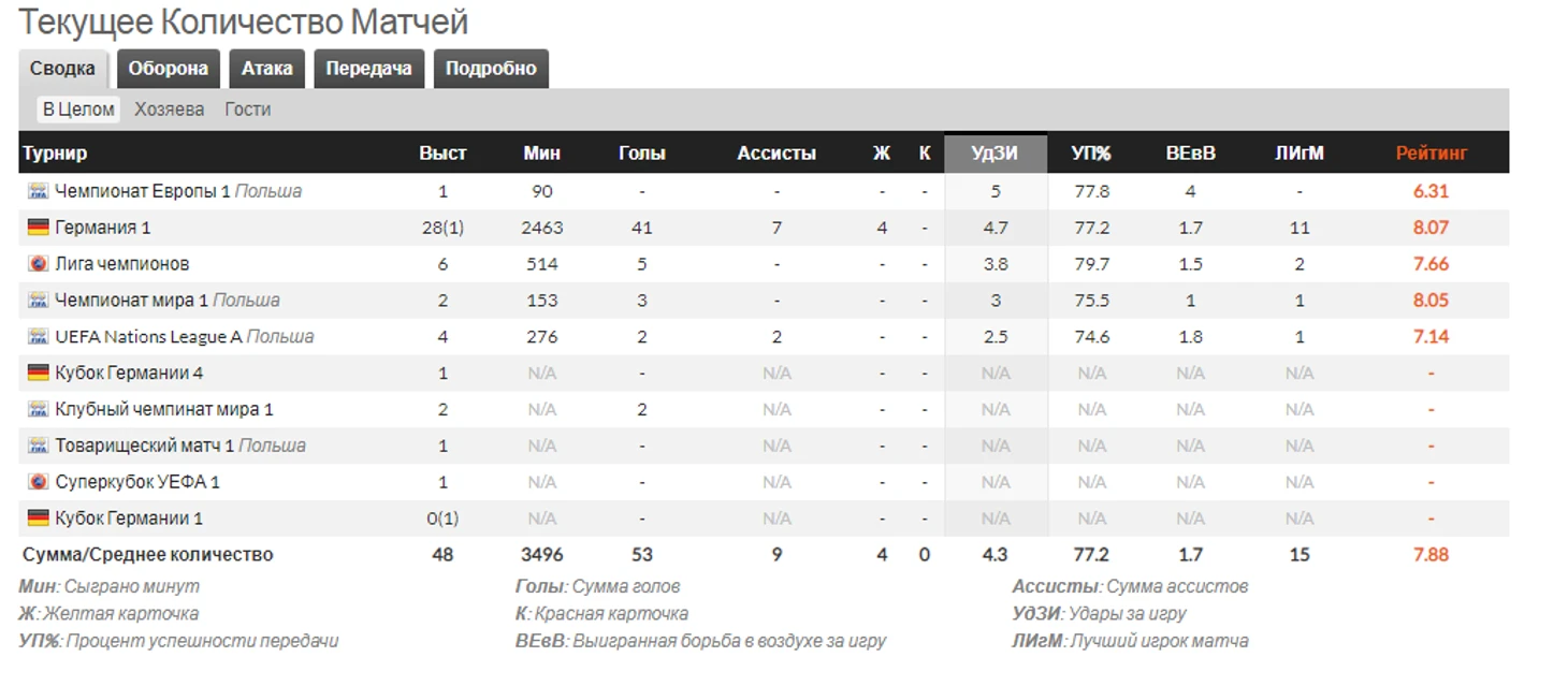 Возможно, не совсем корректно приводить статистику Левандовски в Баварии, там другой уровень партнеров и доминирующий стиль игры. Но с другой стороны, кроме Левандовски там есть кому угрожать воротам оппонентов. Здесь же, все атаки Польши так или иначе будут сводиться к игре на Левандовского. Если поляки смогут угрожать воротам испанцев, если не случится, к примеру, у них быстрого гола либо удаления, то 50% угроз, а то и больше будет исходить от главной польской звезды.