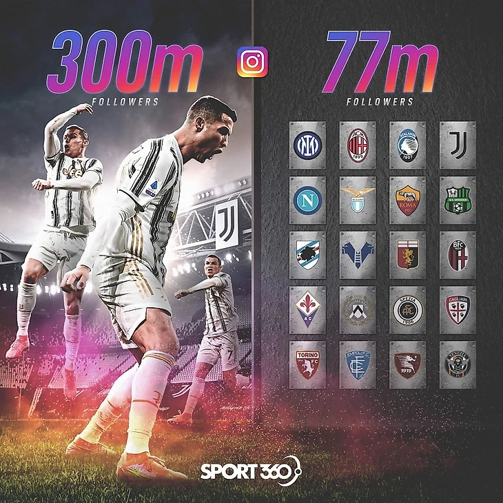 У Роналду на 223 миллиона больше подписчиков в Instagram, чем у всех клубов Серии А вместе взятых.