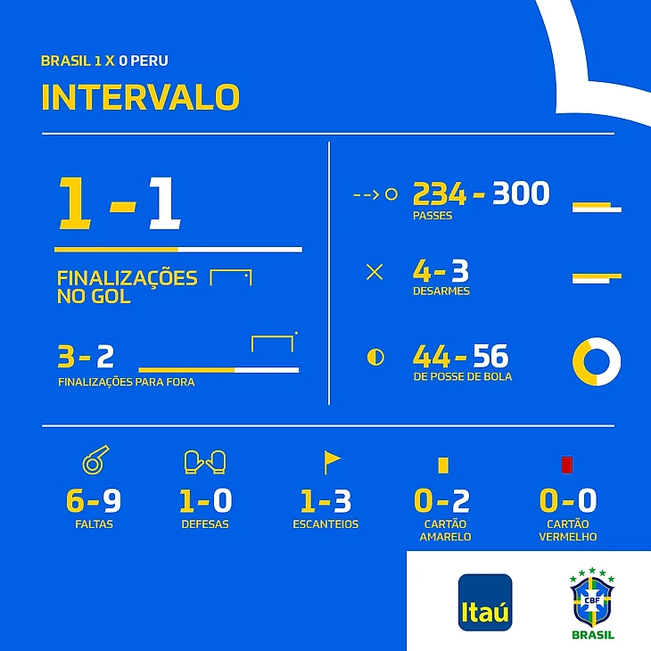 Да и перуанцы имели 2 неплохих шанса до перерыва, в первом случае не дотянулся игрок после скидки,во втором удар принял на себя Данило. У Селесао же кроме гола Сандро отметить можно только удар того же Алекса чуть выше ворот.