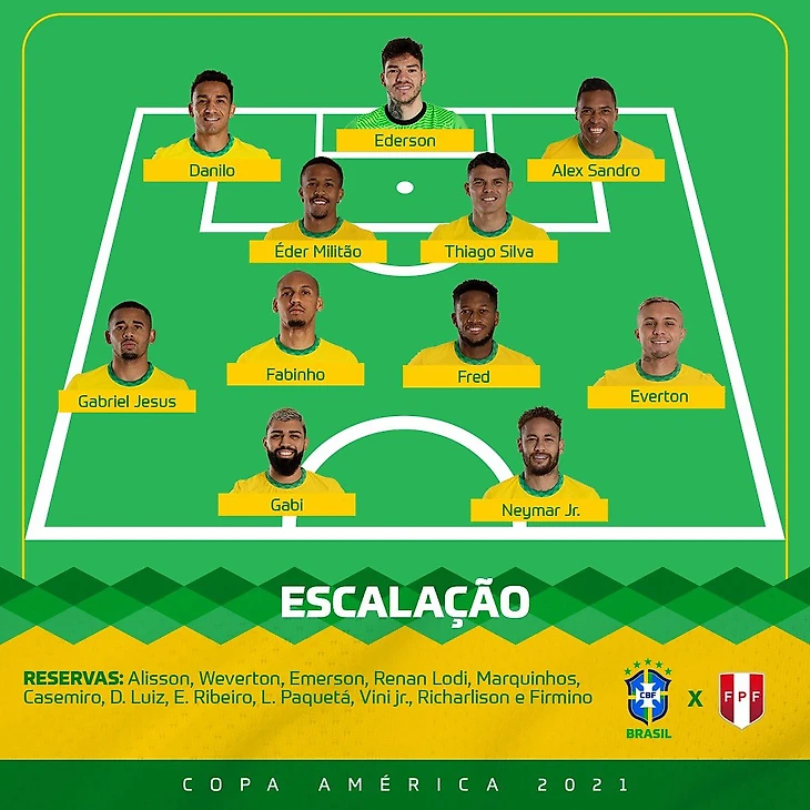Тите продолжил экспериментировать. В составе против перуанцев вышли Тиаго Силва, Фабиньо, Себолинья и Габигол. В воротах ожидаемая ротация-вместо Алиссона Эдерсон.