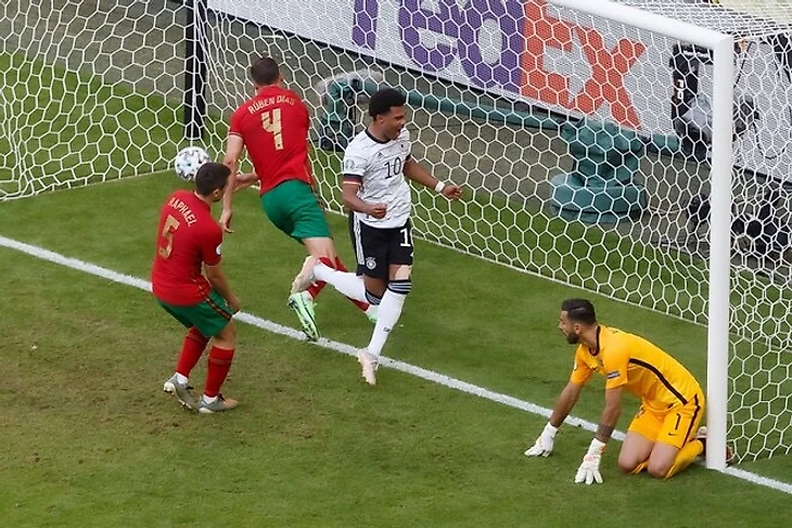 Немцам категорически нельзя давать столько пространства, и сборная Португалии была закономерно наказана. В середине 1 тайма после прострелов с флангов сначала Диаш забил в свои ворота, а потом уже и Геррейру забил не в те ворота, как мы узнали не только Хумельс бьет точно по своим воротам. Первый тайм закончился со счётом 2:1 в пользу сборной Германии.