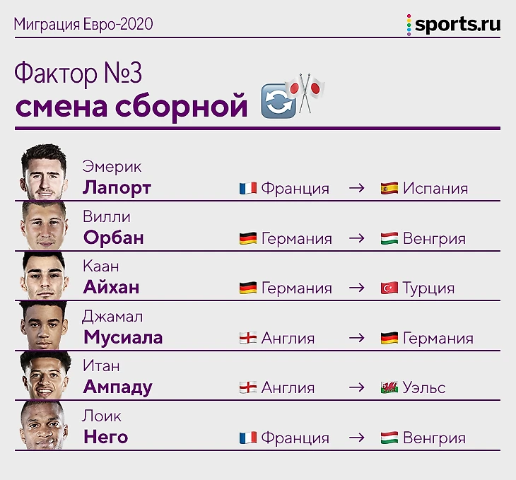 Евро-2020 – мультикультурный турнир: 10,5% всех футболистов (65 из 622) не родились в стране, которую представляют, 28% игроков (177 из 622) имеют двойное гражданство, 23 человека – тройное.