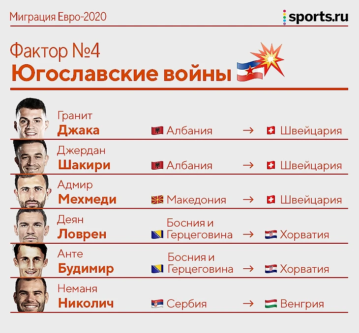 Многие уезжали за мирной жизнью. Гранит Джака родился в Швейцарии в семье албанских беженцев из Косово, его отец еще до распада Югославии был признан политическим заключенным за участие в демонстрациях против коммунистического режима. Семья Джердана Шакири эмигрировала в Швейцарию из Косово, когда мальчику был всего год.