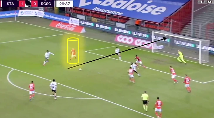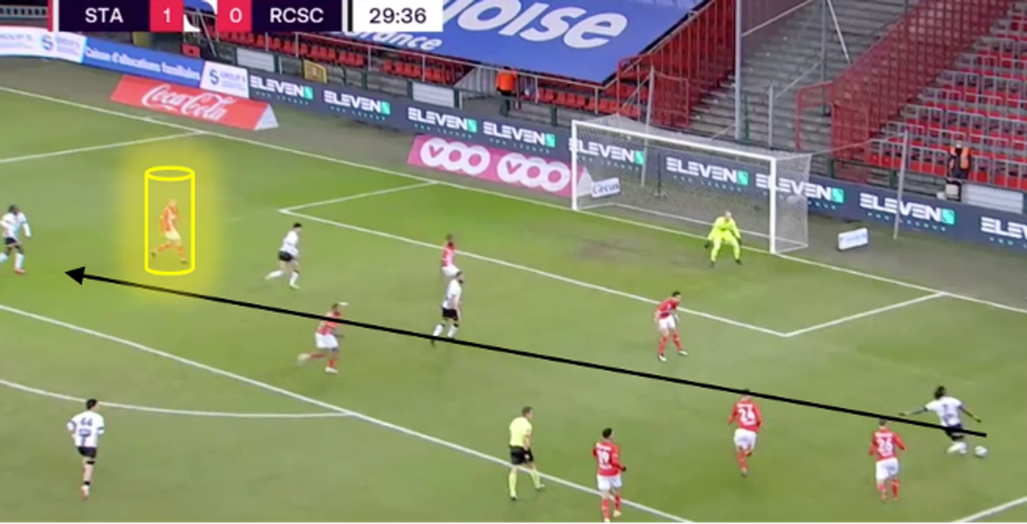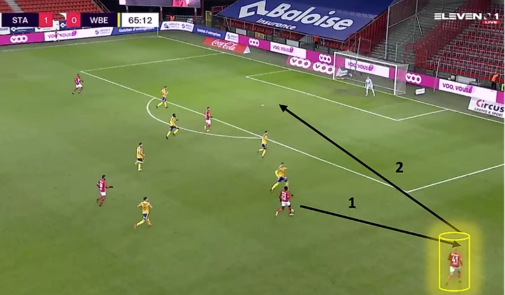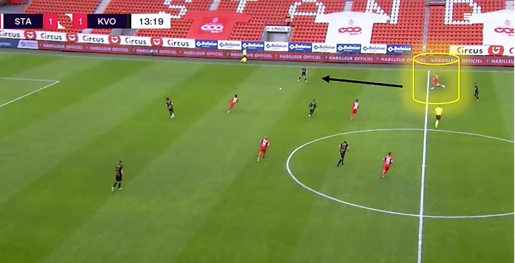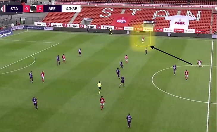 На своей половине поля обычно делает передачи ближнему, не рискует (77% точных передач). При угловых у своих ворот располагается на ближней штанге. Периодически поднимается для прессинга к центральному кругу для препятствования началу атаки соперника. Как правило, «Стандард» встречает соперника в среднем блоке.
