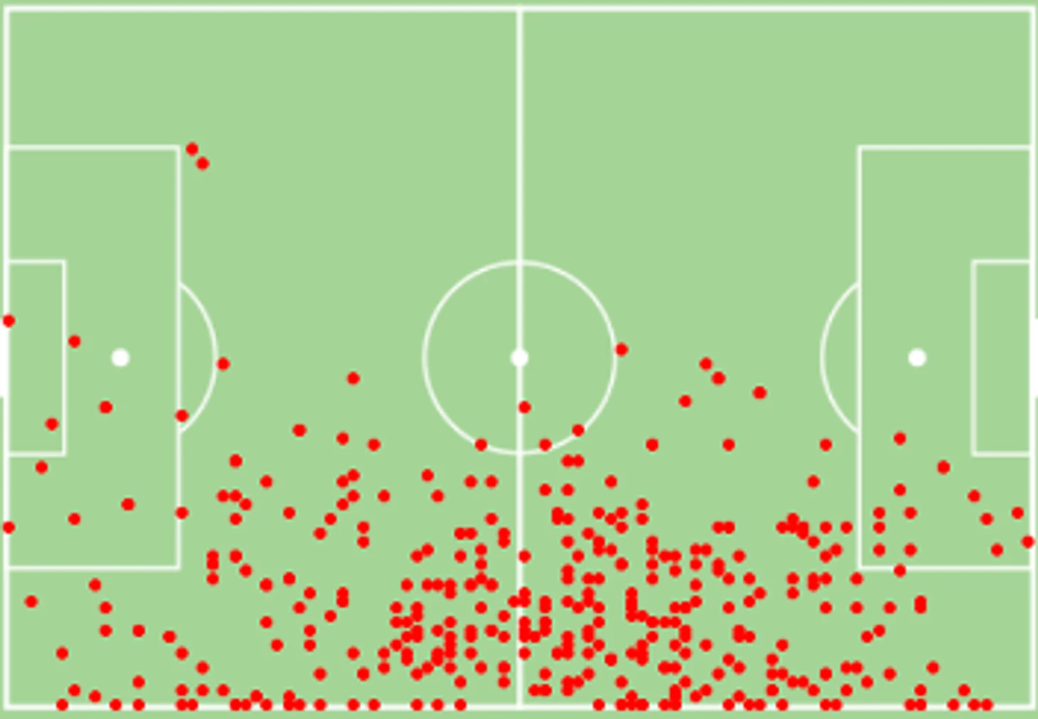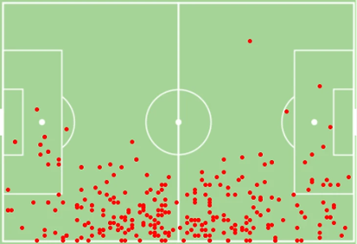 Карта ударов по воротам в сезоне.