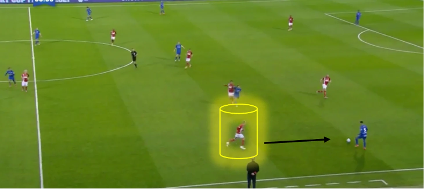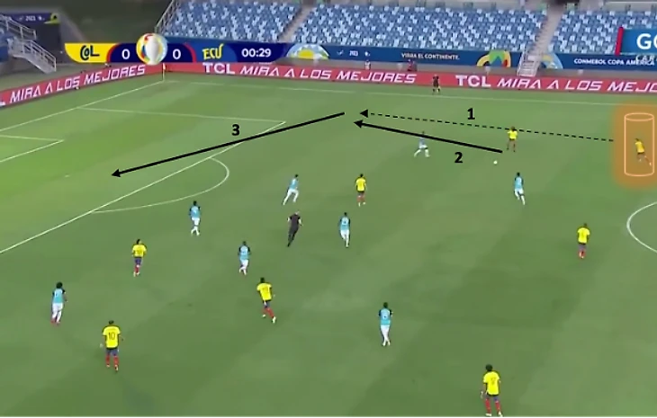 Получение мяча практически в штрафной и затем прострельная передача