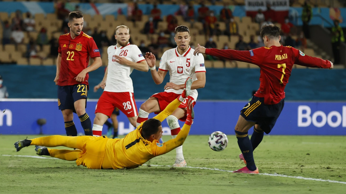 Испания практически сразу перешла на чужую половину поля. Контролируя мяч, они стали создавать моменты. Один из которых закончился голом. И о чудо Альваро Мората, именно он смог отличиться. Еще в первом тайме команды обменялись упущенными 100% шансами забить. После перерыва игра ни капли не изменилась, поляки продолжали уповать на контратаки. И спустя десять минут Левандовски, шикарным кивком головы, все-таки отправил мяч в сетку ворот. Почти сразу, у сборной Испании появился шанс, опять выйти вперед. Только вот, сначала Морено пробил в стойку ворот, а потом Мората с убойно позиции пробил мимо вратаря и мимо ворот. По итогу счет остался равным до конца встречи. Шансы на выход в плей-офф остаются у каждой команды в этой группе.