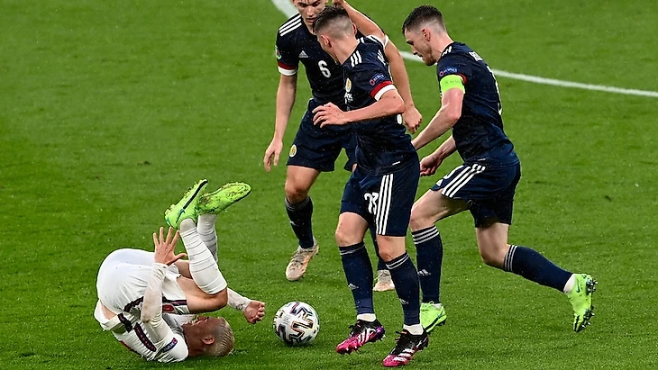Безусловно, в случае с матчем на Уэмбли гостям с севера, которых поддерживало не трибунах едва ли не больше людей чем хозяев, здорово помог и стерильный подход к игре Саутгейта с минимум риска и с двумя разыгрывающими в центре поля, которые при этом практически не обостряли игру. Матёрый же Кларк, проработавший немало лет в штабе Жозе Моуриньо, естественно поставил в состав восстановившегося Тирни, добавив также в центр обороны Мактоминея, а вдобавок ещё и сделав ставку в опорной зоне на техничного Гилмора, для увеличения количества времени, проведенного с мячом. Привело это к тому, что Шотландия не уступала хозяевам ни по одному показателю кроме собственно владения, которое у Англии повторюсь было практически стерильным. Минимум опасных моментов, да и те созданные по большей части на индивидуальном мастерстве, и полная заточенность на контратаки, коих Тартановая армия проводить не давала, встречая соперника грамотным мид прессингом после потерь мяча.
