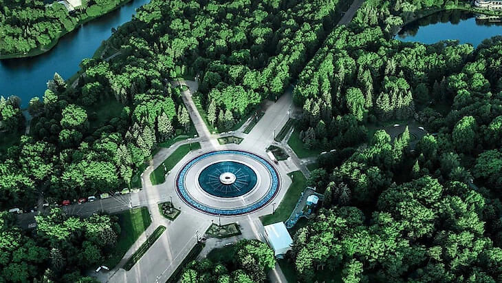 На Крестовском острове в Санкт-Петербурге появилось кольцо-триколор вокруг фонтана. Это работа Покраса Лампаса к Евро-2020