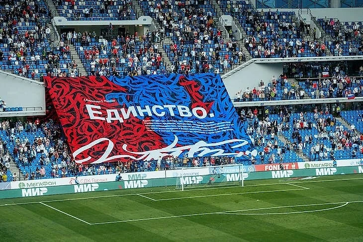 А перед контрольным матчем сборных России и Болгарии появился нарисованный Покрасом баннер.