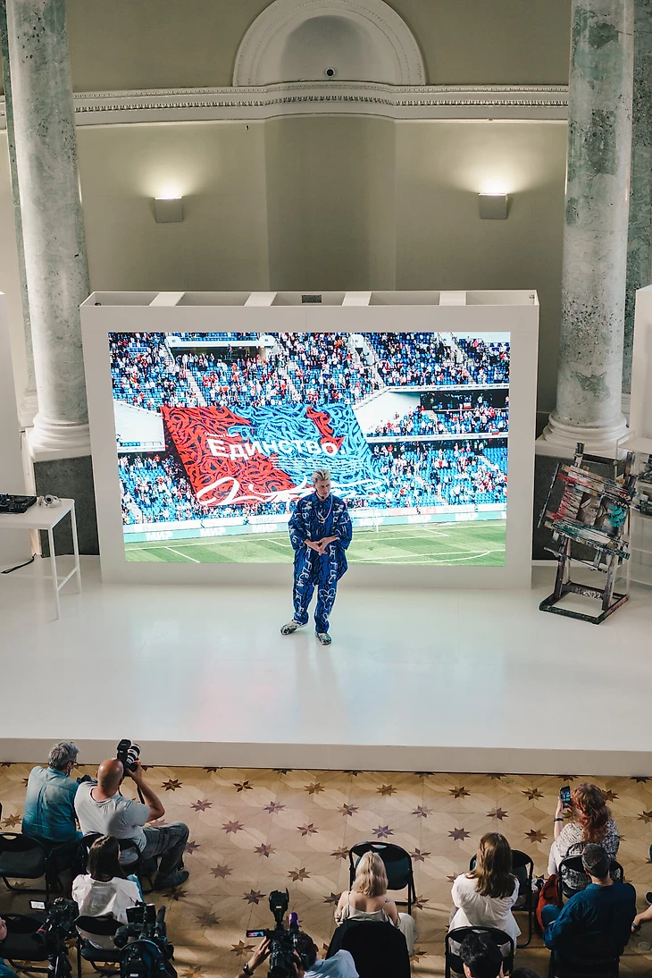 Триколор — не первая работа Покраса Лампаса в Петербурге на Евро-2020. В поп-ап галерее (Невский проспект, 20) он написал слова «единство» на языках всех участников соревнований.
