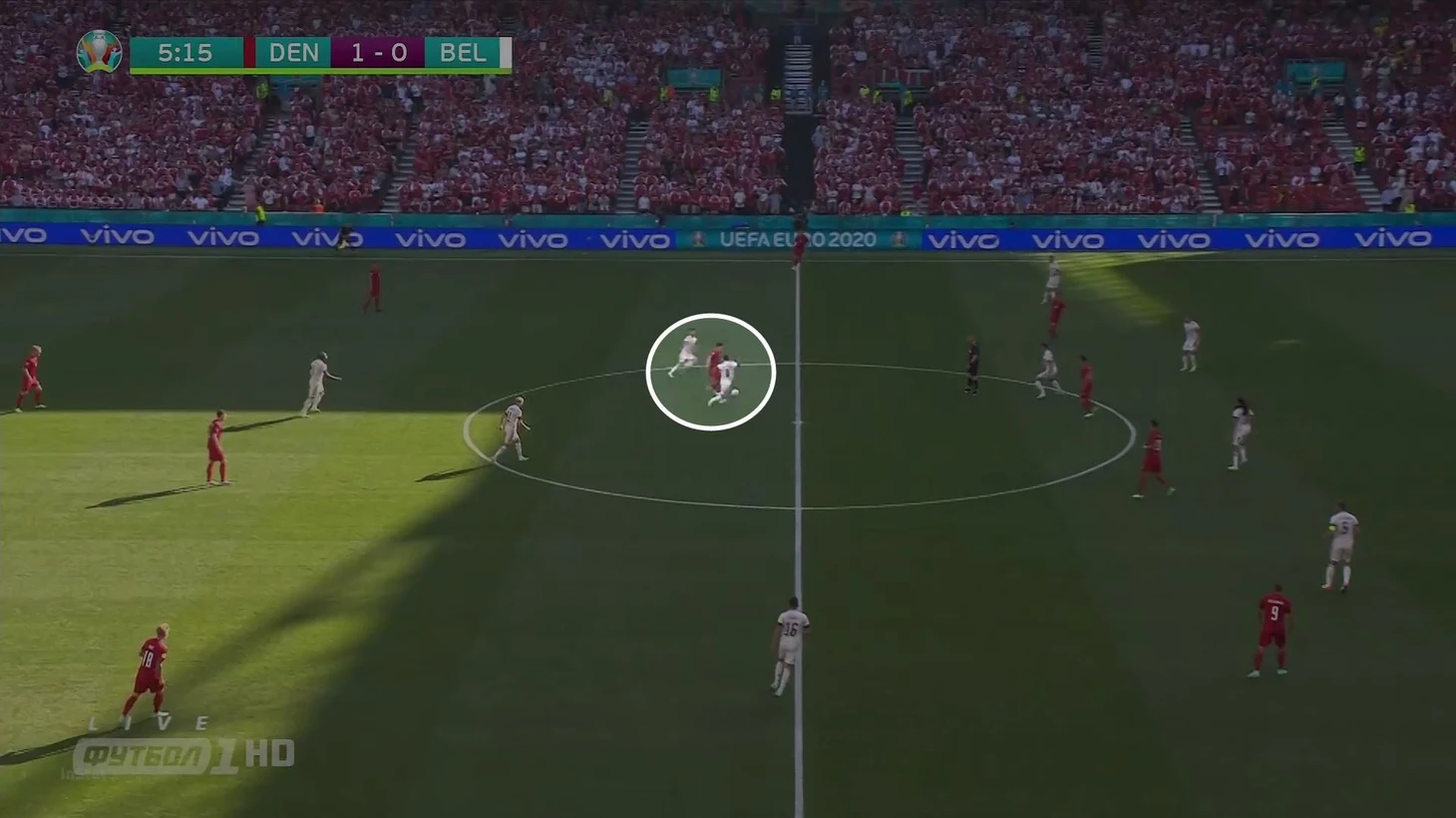 Заточенная на предугадывание игра в отборе свойствена Хейбьергу. Он всегда караулит момент небрежного паса. Если соперник отдает передачу под давлением, он всегда готов выскочить из-за спины получателя: