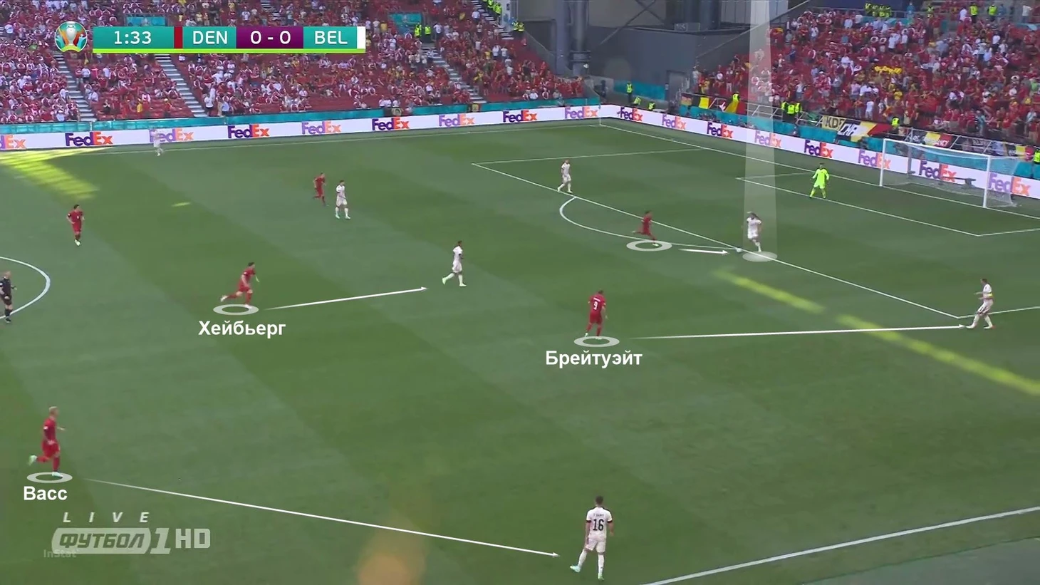 Лучший пример – гол в ворота Бельгии. Именно Хейбьерг прочитал небрежный пас Денайера – и сразу же обострил:
