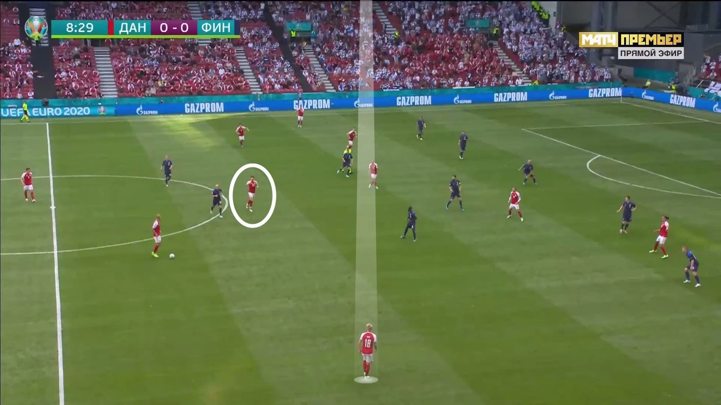 Мы обязательно разберем на примерах, как это проявляется, но один показатель особенно хорошо подчеркивает важность датского опорника. Он лидирует на Евро по предударным пасам с игры:
