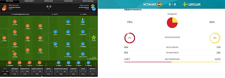 Да, конечно, как мог забыть… Испания – Швеция на это Евро. Из прессы я на протяжении нескольких дней слышал: Испания установила рекорд, 85% владения, лишь 15% времени мяч был у шведов и т.д. Whoscored подтверждает, УЕФА – конечно же, нет.