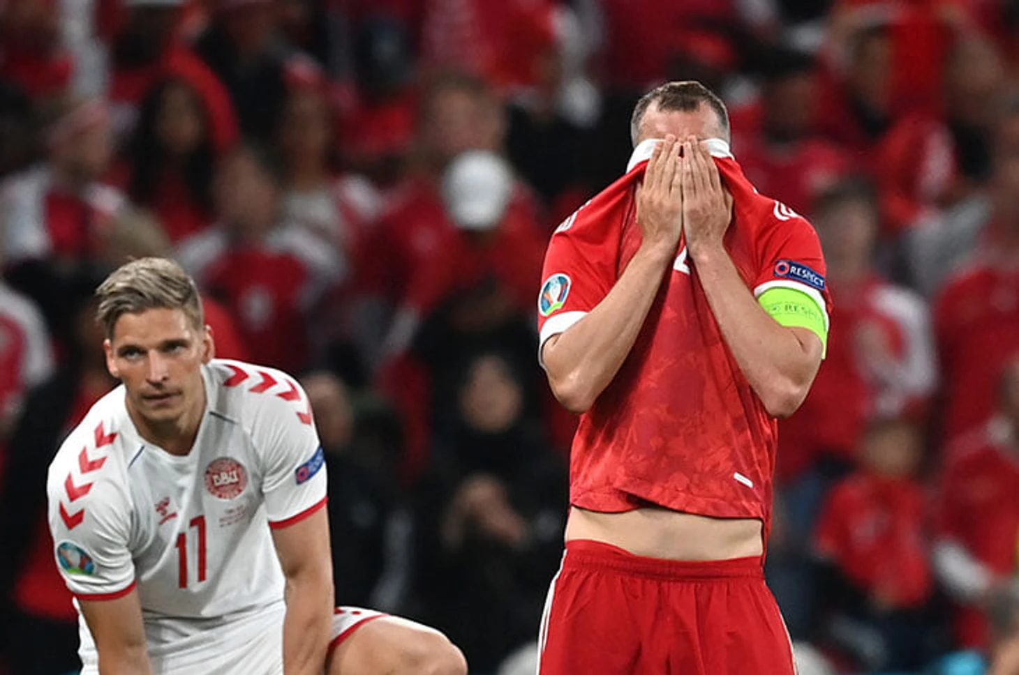 Эмоции игроков сборной России после 1:4 и вылета с Евро. Только фото