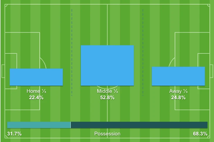 Даже самое популярное – и, пожалуй, самое законное – требование по поводу смелости отпадало. В первом тайме Россия не то что не паниковала, а даже не прижималась к воротам. К перерыву на трети России мяч был даже меньше времени, чем на трети Дании (на карте Россия в роли хозяев, если что).