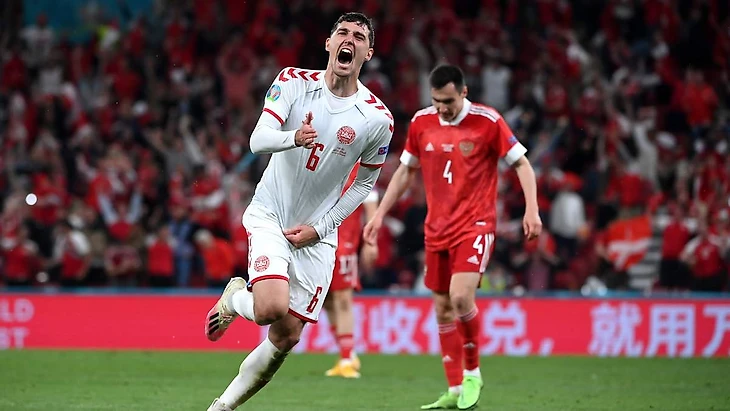 После этого гола наша сборная на 9 минут стала выглядеть увереннее . Наши стали больше создавать, убегать в контратаки, появились опасные моменты. Но одна атака датчан всё изменила. Скандинавы нанесли 3 опаснейших удара около ворот, но Сафонов был надёжен, мяч отскочил к Андреасу Кристенсену. Защитник решил ударить "на шару" и забил. Этот гол я могу назвать случайным, было видно что игрок Челси сам не был уверен, что мяч попадёт в ворота. Поэтому мы ставим -.