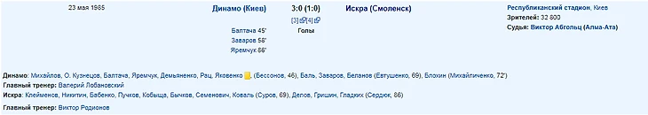 А сейчас стоит сделать небольшой экскурс в историю: 24 мая 1937 киевские динамовцы в столице Украины провели свой первый матч в соревнованиях на кубок страны встречаясь со смоленским ДКА. И выиграли 3:0. И вот 23 мая 1985 года, спустя 48 лет, новое свидание, и вновь в Киеве но уже в полуфинале кубка страны.