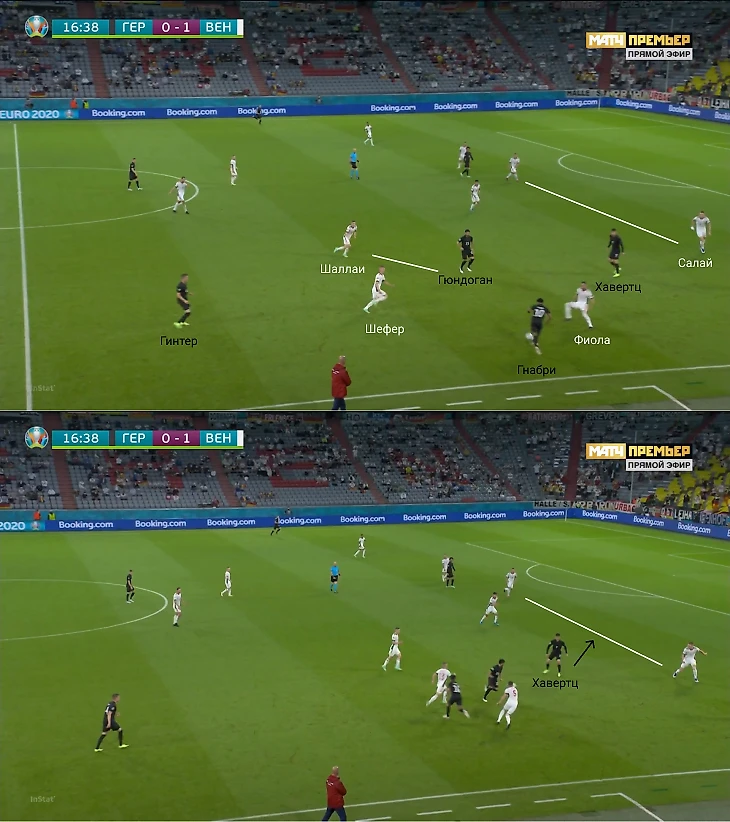 Гол получился собирательным: Венгрия вышла из-под прессинга, а Шаллаи во время забега отклеился от Рюдигера (как это делал Кляйнхайслер). В определенный момент Антонио выбросился за ним, затем эпизод уже страховал Кроос.