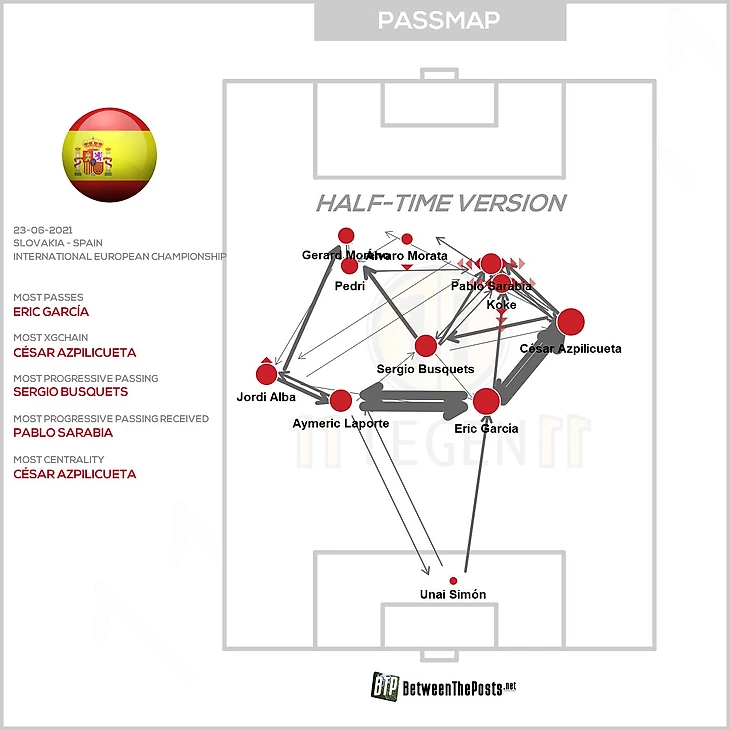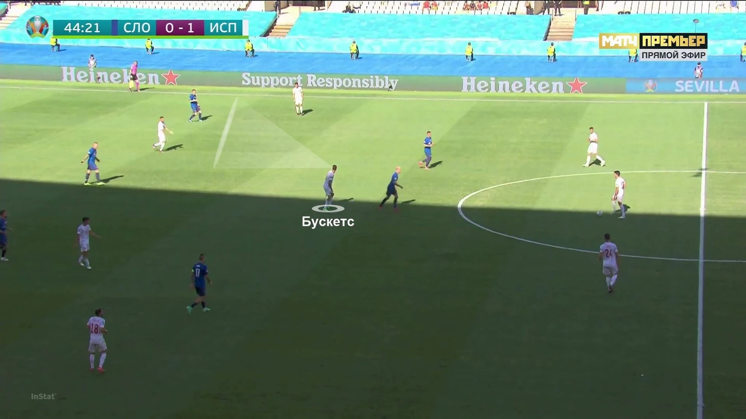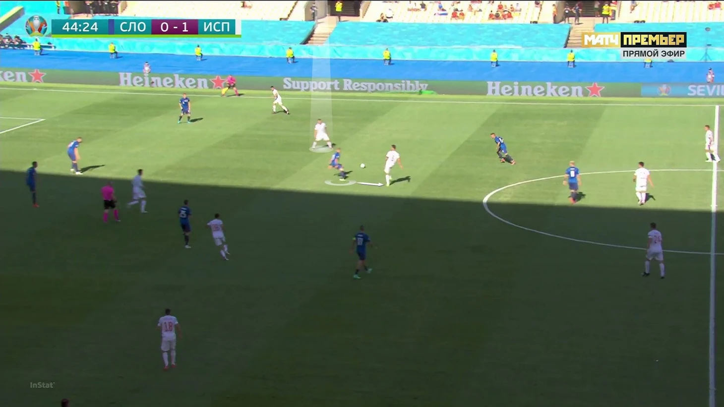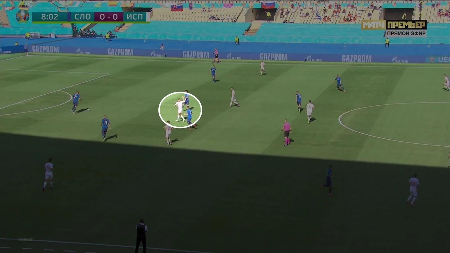 Такой вариант подходил качествам игроков. Аспиликуэта играет в схожей роли в «Челси», а Лапорту намного удобнее находиться ближе к левому флангу. Но прием подходил и под конкретного соперника – у Словакии без мяча была схема 4-4-2. Это приводило к соотношению 3-в-2 с преимуществом Испании в первой стадии.