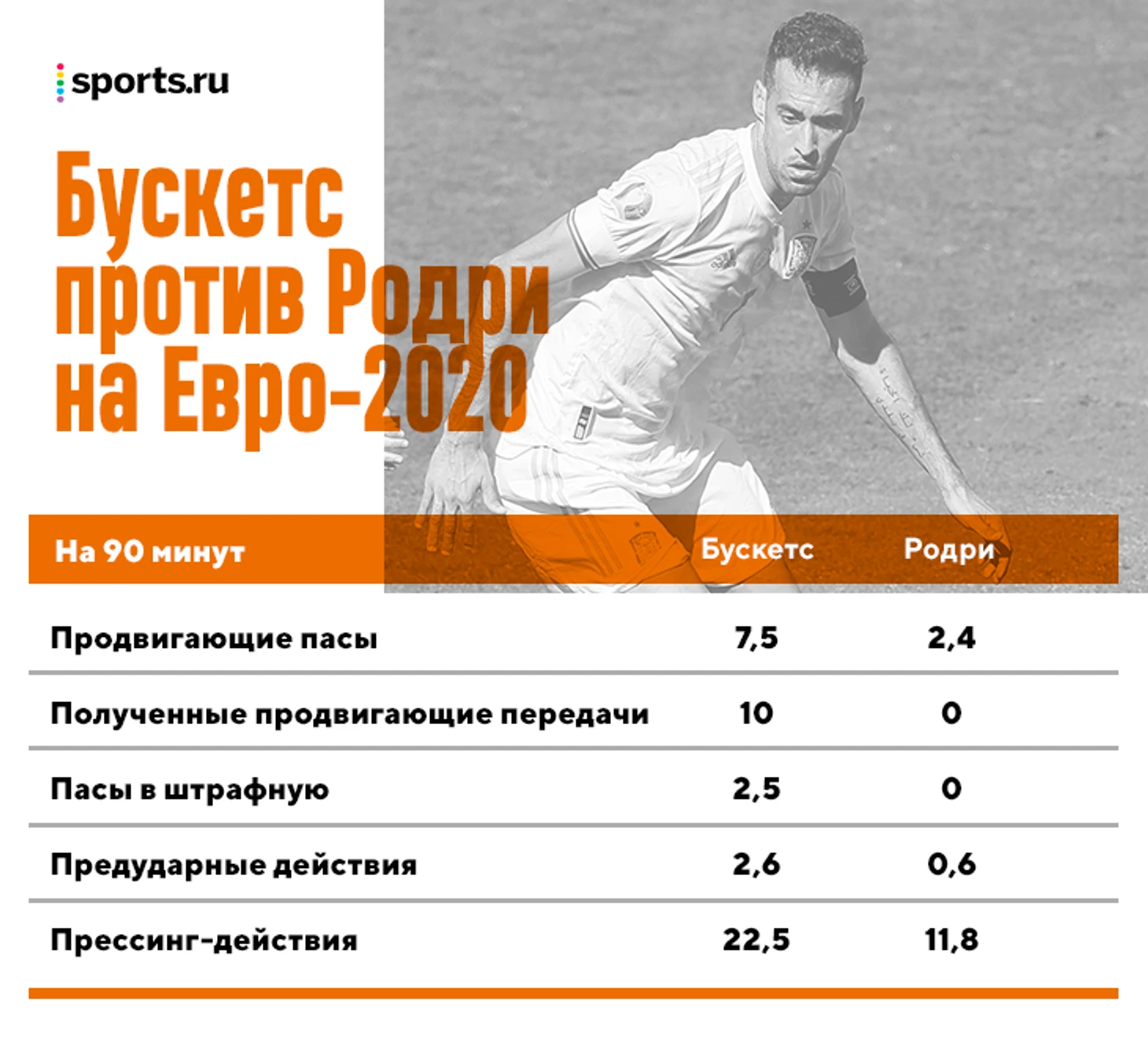 Особенно хорошо эффект Бускетса прослеживался в первом тайме, когда Испании нужно было вскрывать соперника, а не просто контролировать игру, периодически взрываясь. Опорник «Барселоны» был лучшим по продвигающим пасам и доставлял мяч именно в зону между линий Коке, Педри и Сарабии: