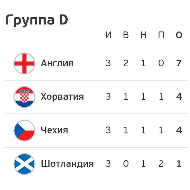 Шотландия набрала одно очко в трёх матчах, ни разу не уступив своим оппонентам по количеству ударов. В среднем за игру шотландцы наносили ~14 ударов по воротам, но забить смогли только один раз. Англия пока на этом турнире забила столько же, сколько Словакия, Россия и Македония, но всё равно вышла в плей офф с первого места, где в 1/8 финала они встретятся со сборной Германии. Хорватия и Чехия так же продолжают своё путешествие на этом турнире: Хорватия сыграет с Испанией, а Чехия с Нидерландами.