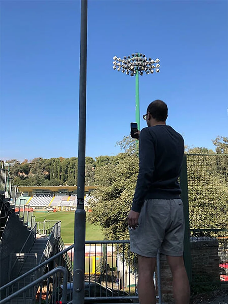 Это Федос Маслов, бывший босс соцсетей Sports.ru, теперь звезда «Амкала» и всего футбольного ютуба, фотографирует стадик «Сиены» и отправляет фоточки Герману Эль Класико, хозяину «Амкала». Герман играл в Серии С за «Римини» и гонял на выезды в Сиену на «Артемио Франки». Стадик плотно вписан в город, итальянская архитектура обнимает стадион. Вау!