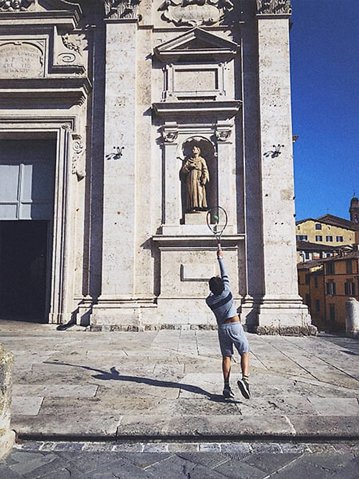 Это церковь Санта-Мария ин Провинцано, тоже в Сиене. Очень уютная, еще больше красивая, поверьте мне. Когда мы из нее вышли, увидели 11-летнего парня, который шарашил теннисным мячом об стену. Без каких-либо оскорблений чувств.