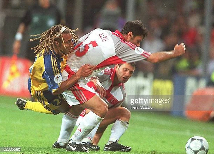 Крайне драматично для хозяев поля сложился матч Бельгия-Турция(0-2).Бельгийцы очень старались,но проиграли туркам прежде всего тактически.Матч начался мощными атаками хозяев,включивших очень высокие скорости.Турки же ушли в оборону,не пытаясь соревноваться с хозяевами в скорости и действуя в замедленном темпе.Бельгийцы много атаковали,не раз могли забить,но мяч упорно не шёл в ворота.К тому же бельгийцам не хватало тонких игроков,умеющих совершить что-либо полезное в условиях ограниченного пространства и дефицита времени.Тот же Вильмотс является достаточно хорошим полузащитником,но у него напор превуалирует над фантазией.Не располагала Бельгия и классными нападающими,таким как хотя бы например турок Хакан Шукюр.И всё же наверняка бы Бельгия успешно довела бы матч до победного конца,если бы на 24-й мин. судья не отменил гол Мпензы.Бельгийцы продолжали атаковать,но турки уже наладили контратакующую игру.И если первые два шанса турки не использовали(Х.Шукюр и Ариф) благодаря прекрасной игре Де Вильде,то уже в добавленное время 1-го тайма ужасная ошибка вратаря,не дотянувшегося в прыжке(!) до мяча,позволила Х.Шукюру открыть счёт.По сути это была роковая ошибка.Во 2-м тайме бельгийцам ничего не оставалось,как идти вперёд,но при этом они забыли об осторожности,с ошибками играла оборона.Ошибка на 70-й мин. при исполнении офф-сайда по сути похоронила хозяев.Концовку матча хозяева провели с полевым игроком в воротах,так как кипер был удалён за фол последней надежды.