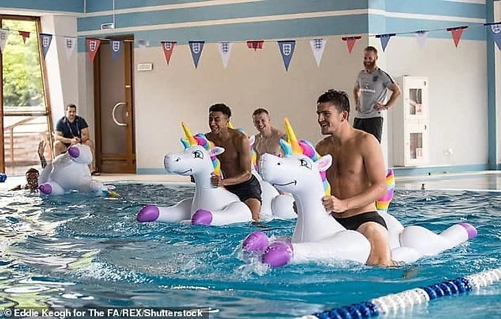 Футболисты сборной Англии оседлали надувных косаток. На ЧМ-18 использовались единороги
