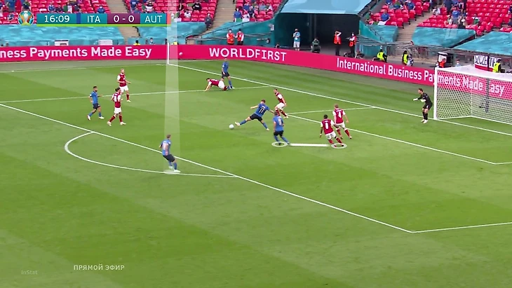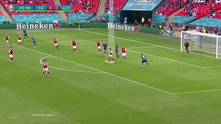 Лучший пример – ситуация перед отмененным голом Австрии. У Лайнера перед подачей в штрафную был гектар пространства и куча времени на подготовку, Инсинье не было даже в кадре: